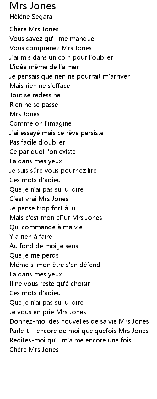 | Parle-t-il encore de moi quelquefois Mrs Jones | |