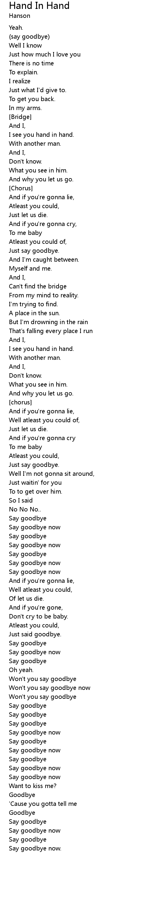 Won't you say goodbye |