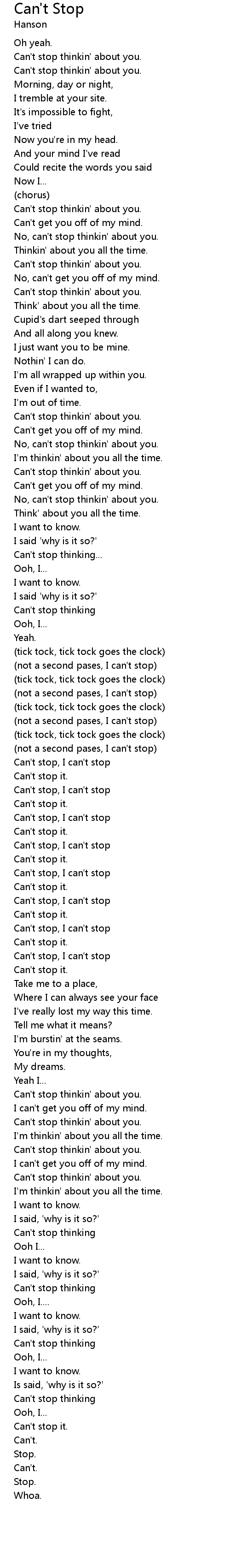 Can't stop, I can't stop |