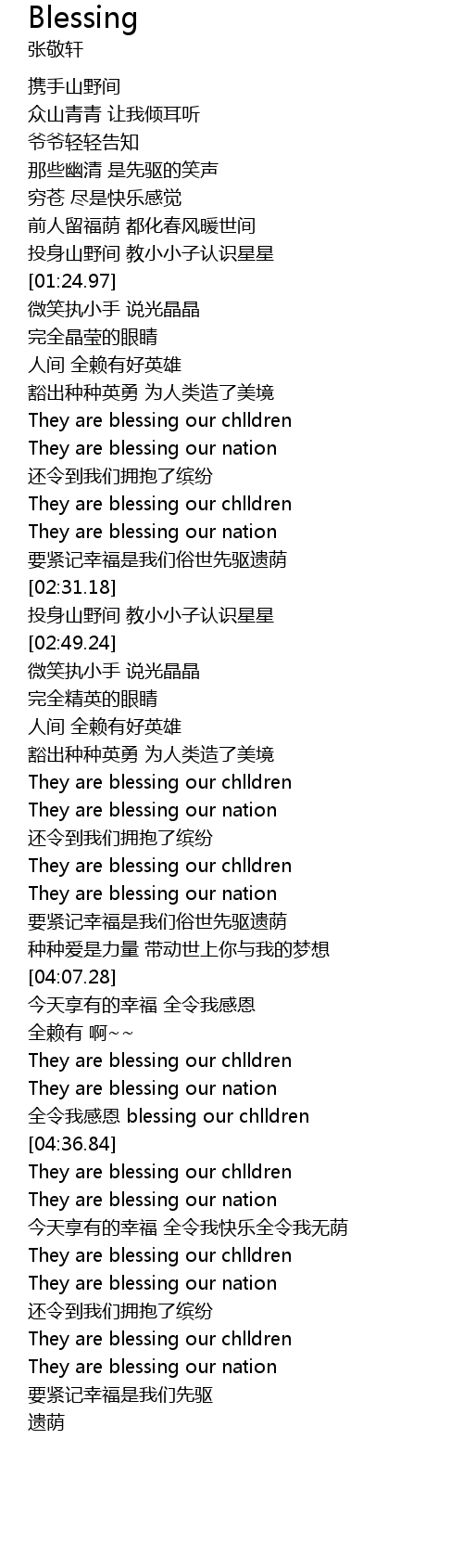 | [04:31.22] | 全令我感恩 blessing our chlldren |