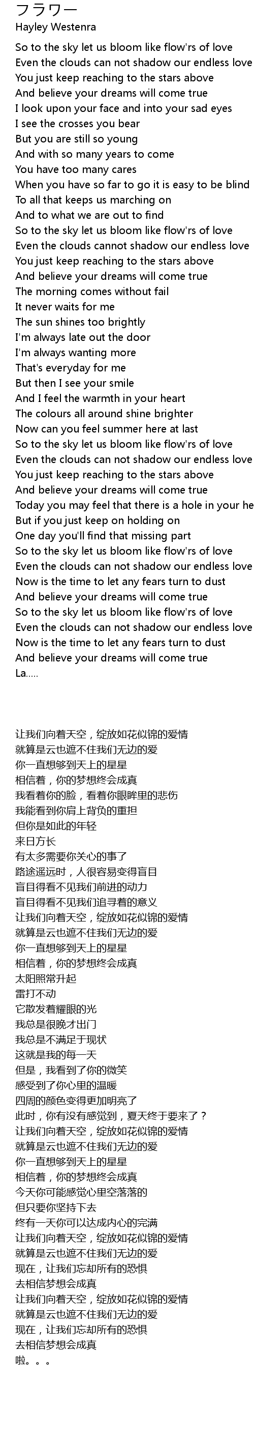So to the sky let us bloom like flow'rs of love |