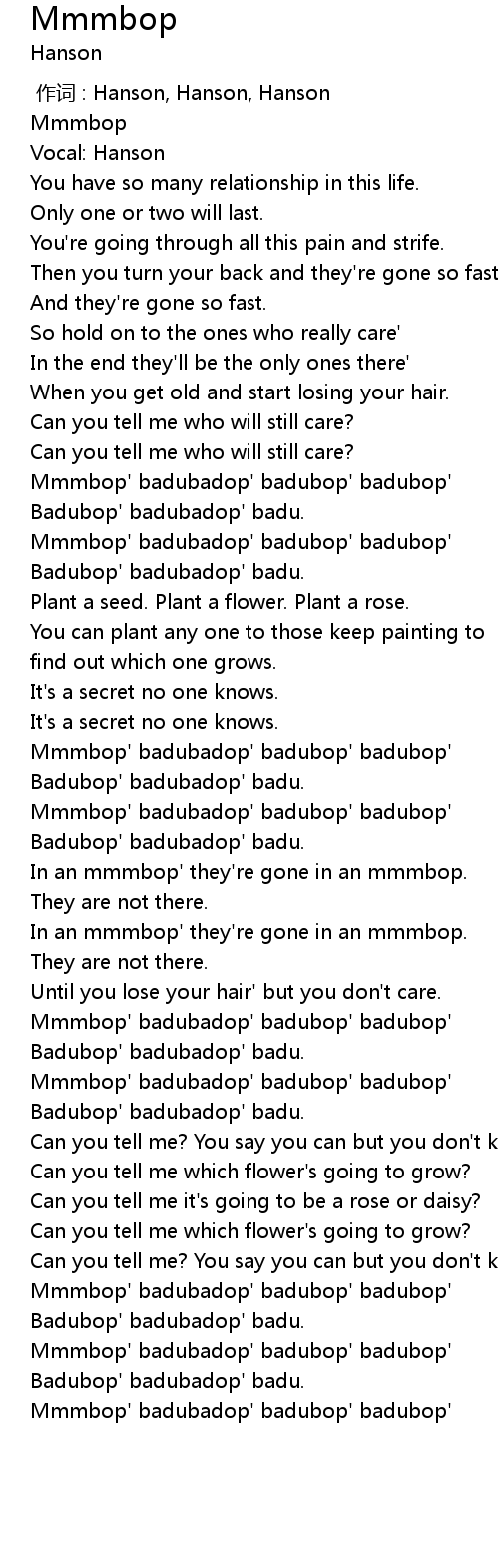 | [00:55.50] | Mmmbop' badubadop' badubop' badubop' |