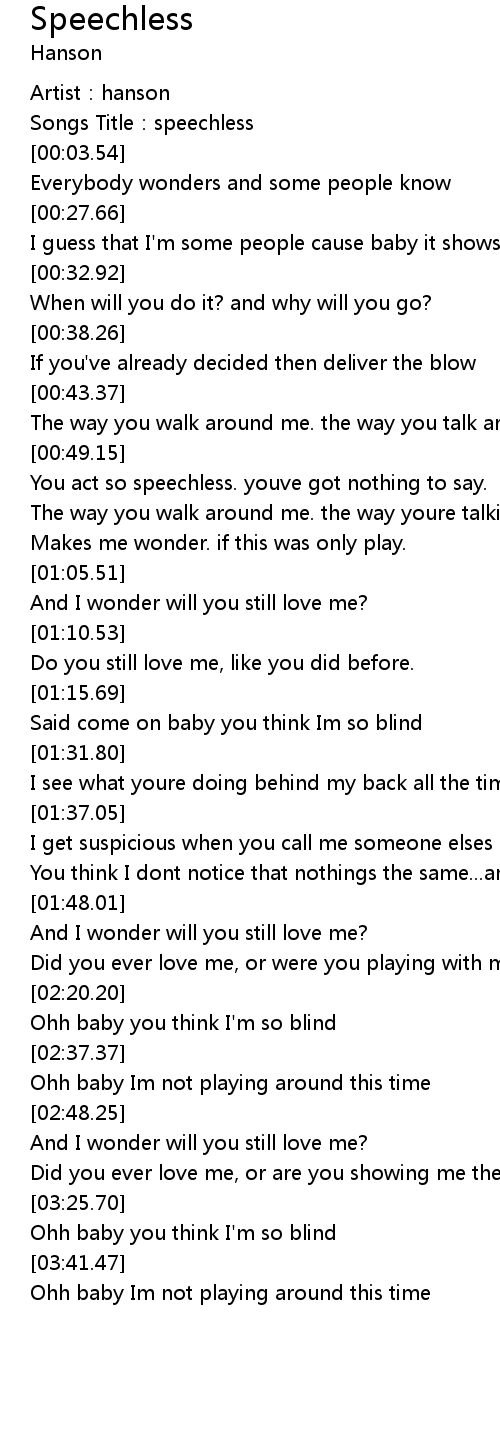 | [00:49.71] | You act so speechless. youve got nothing to say. |