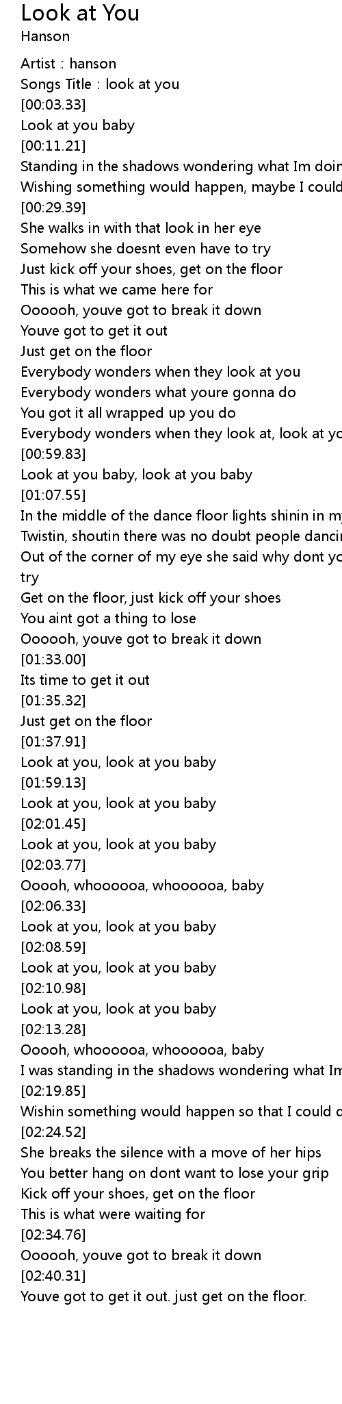 | [02:30.45] | Kick off your shoes, get on the floor |