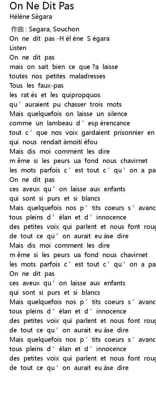 | 歌曲 | On Ne Dit Pas |