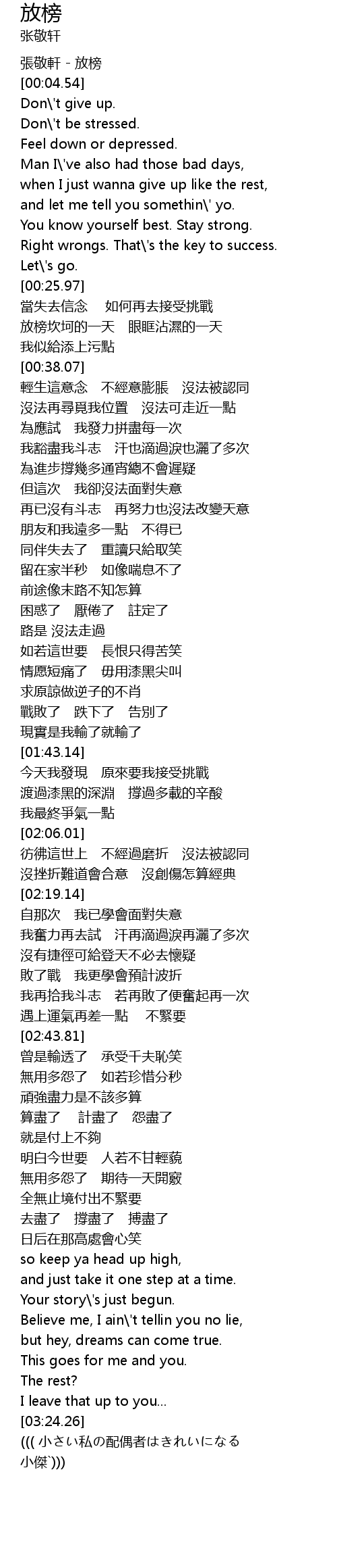 | [00:02.53] | 張敬軒 - 放榜 |