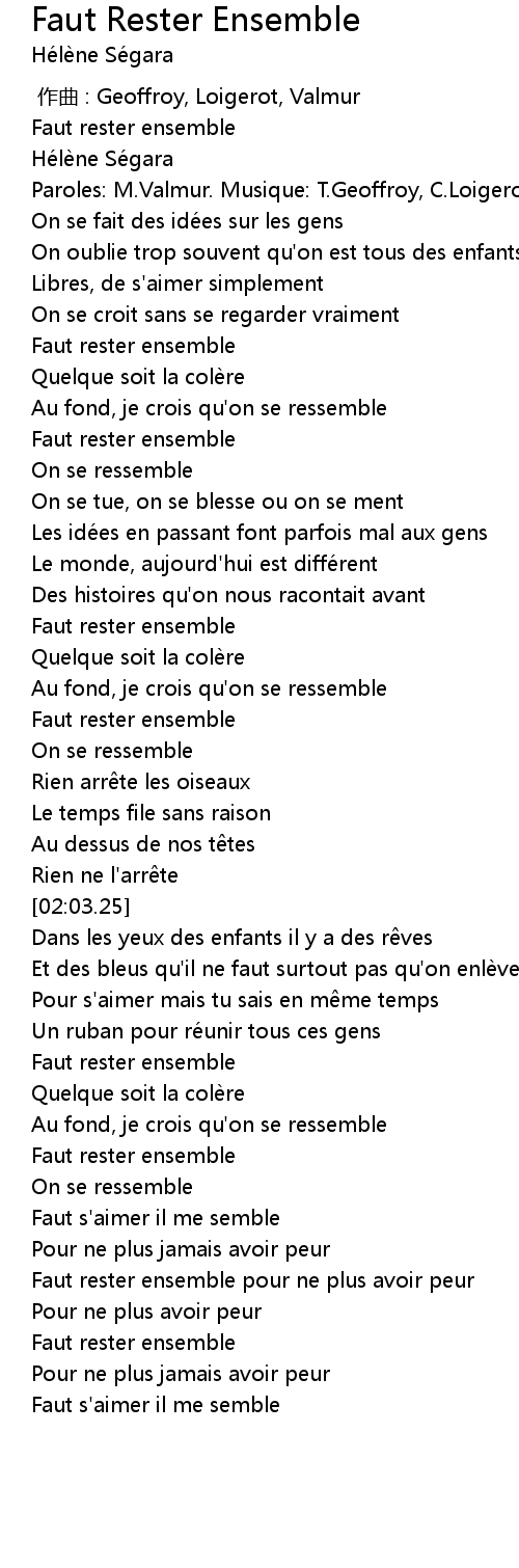 | [02:54.77] | Faut rester ensemble |