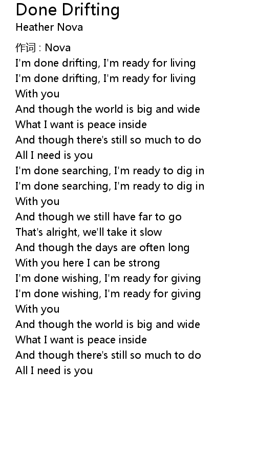 | I' m done drifting, I' m ready for living | |