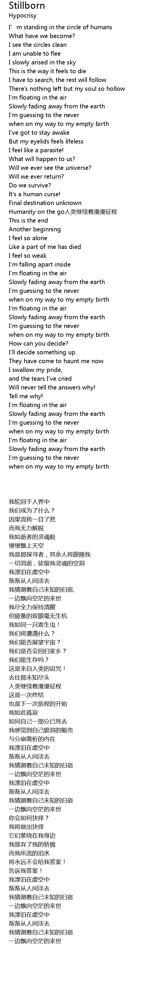 | [01:42.33] | 我漂泊在虚空中 |