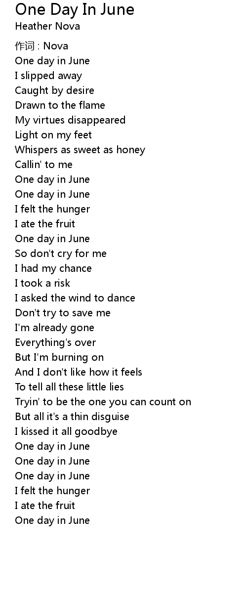 | 歌曲 | One Day In June |