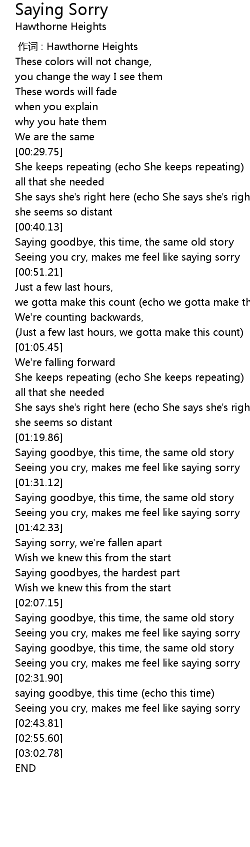 | [02:38.38] | Seeing you cry, makes me feel like saying sorry |