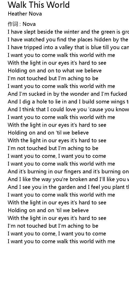 | I want you to come walk this world with me | |