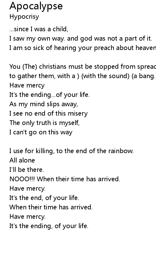 I am so sick of hearing your preach about heaven all this bullshit about paradise. [chanting] |