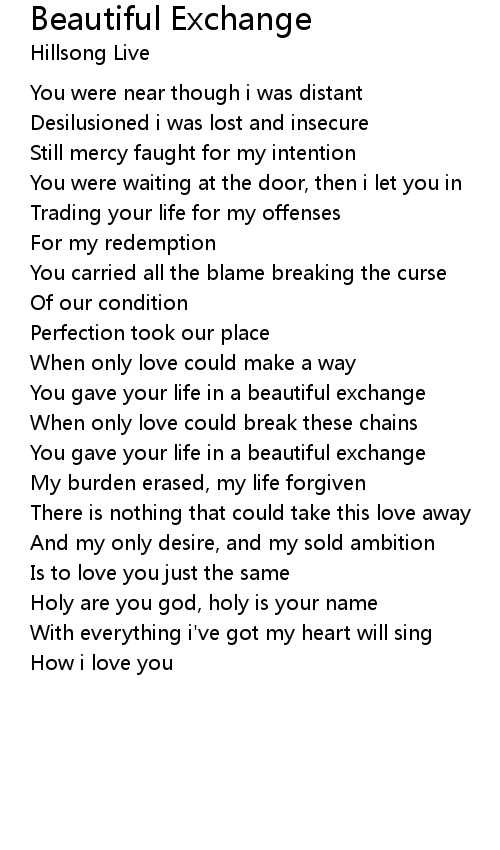 You gave your life in a beautiful exchange |
