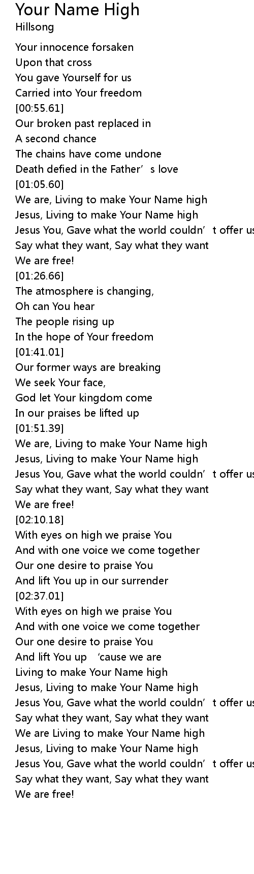 | [02:53.90] | Jesus, Living to make Your Name high |