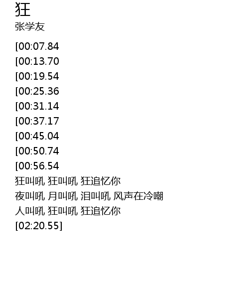 | [02:12.01] | 人叫吼 狂叫吼 狂追忆你 |