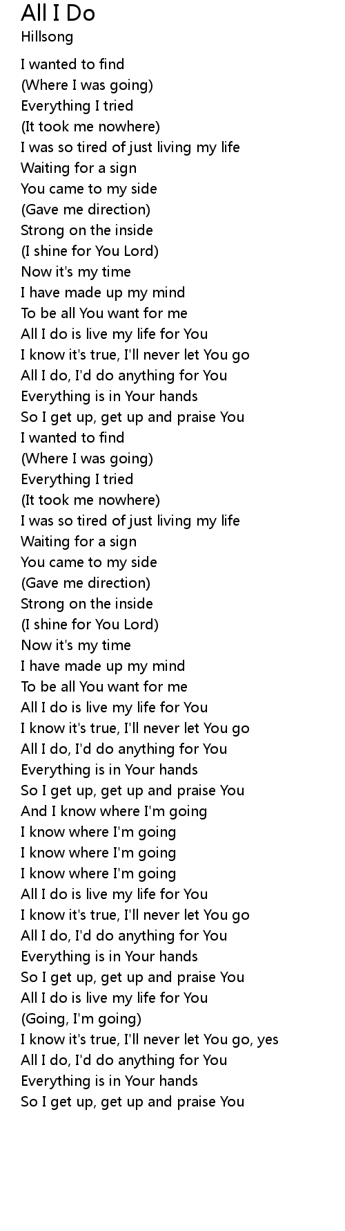 | All I do is live my life for You | |