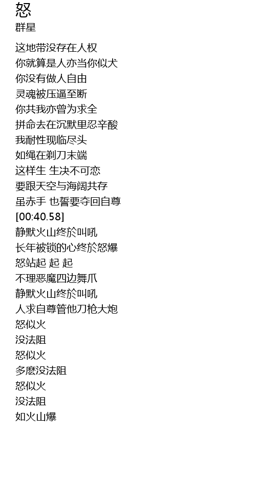 | [01:32.04] | 怒似火 |