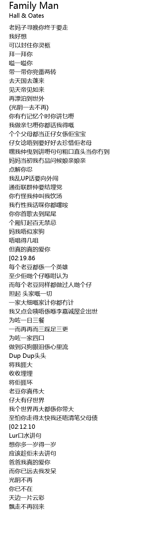 | [02:07.36] | 至怕你走得太快我还唔清笔父母债 |