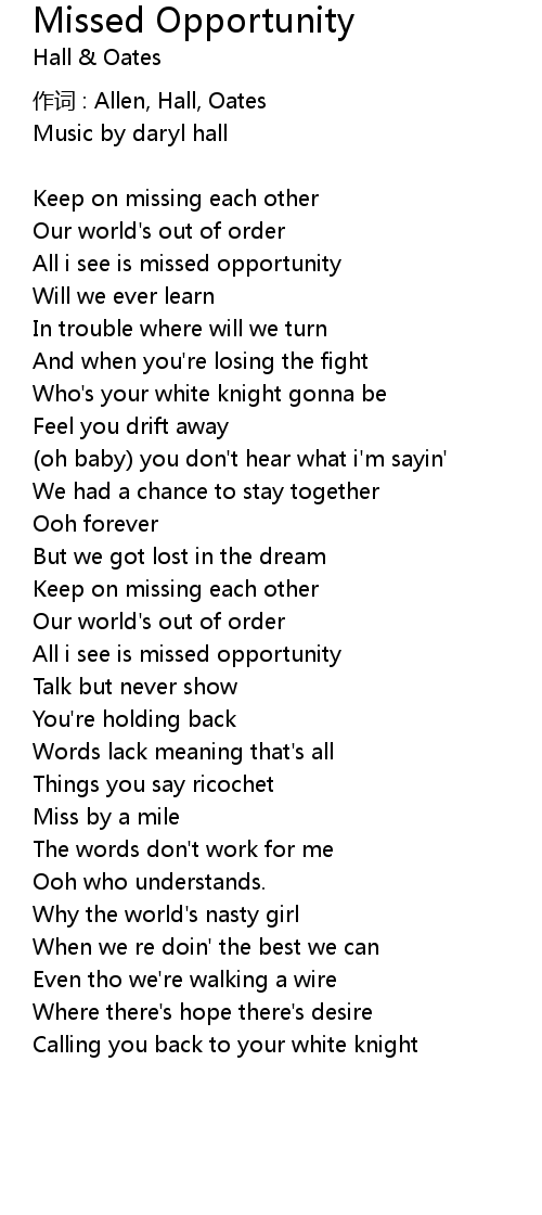 | 歌曲 | Missed Opportunity |