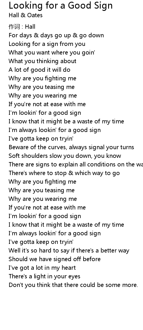 | I' m always lookin' for a good sign | |