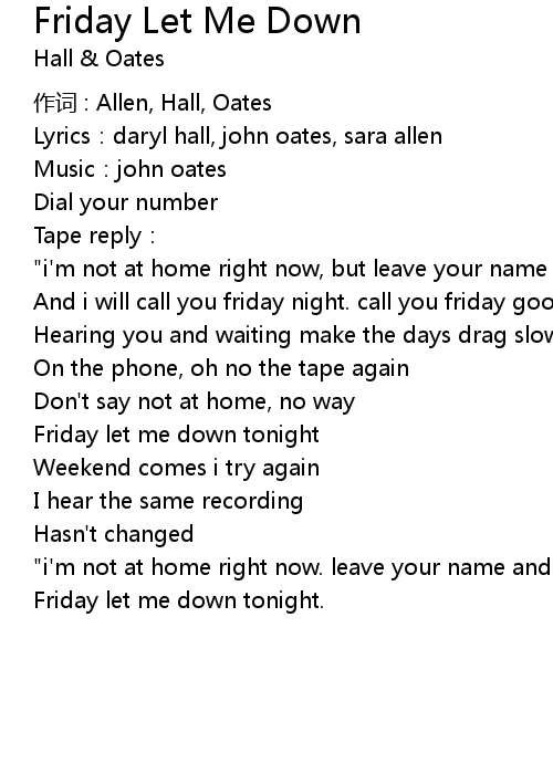 | 歌曲 | Friday Let Me Down |