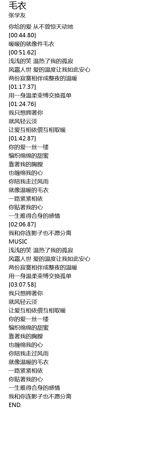 | [03:37.08] | jiù xiàng wēn nuǎn de máo yī |