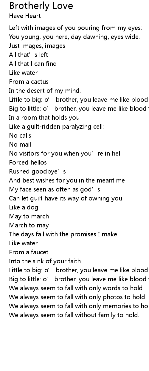 | Little to big: o’ brother, you leave me like blood from my veins. | |