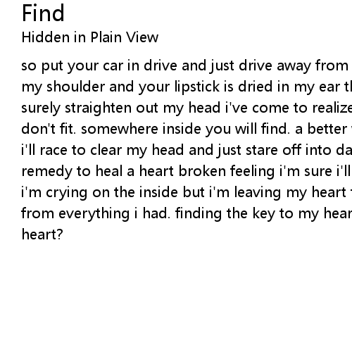 so put your car in drive and just drive away from here your tears are soaked on my shoulder and your lipstick is dried in my ear three lonely winding ways will surely straighten out my head i've come to realize that your keys to my heart don't fit. somewhere inside you will find. a better way to make you feel alive. i'll race to clear my head and just stare off into dark ceilings but there's no remedy to heal a heart broken feeling i'm sure i'll never live this one down. i'm crying on the inside but i'm leaving my heart to drown. i feel so far away from everything i had. finding the key to my heart. who holds the key to my heart? |