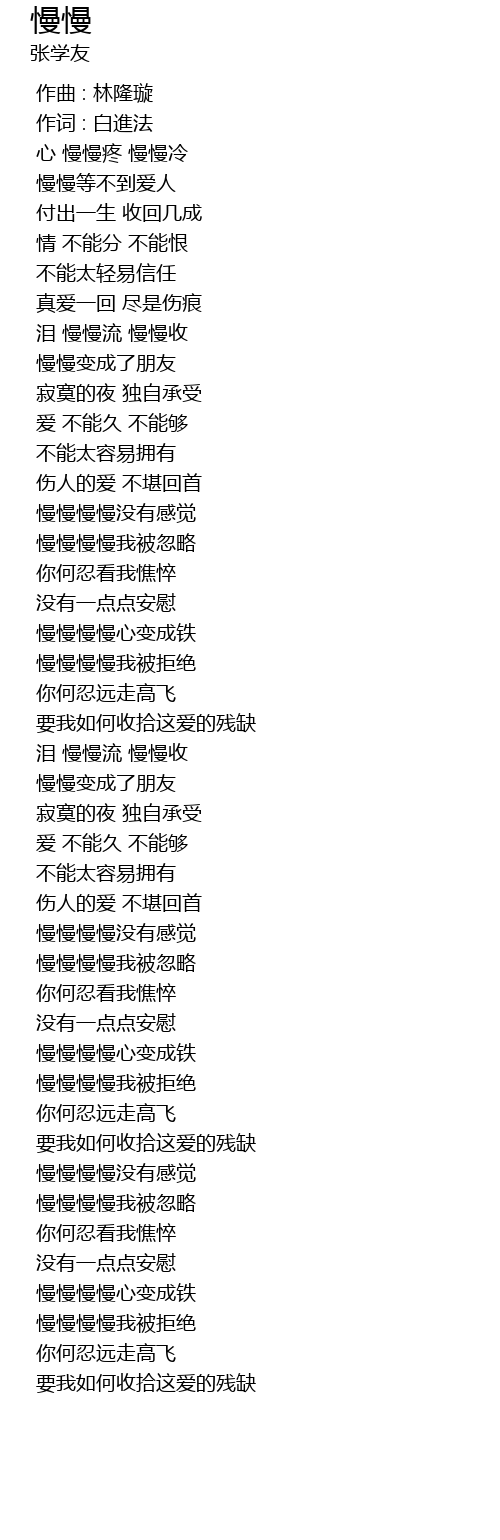 | [04:02.899] | màn màn màn màn xīn biàn chéng tiě |