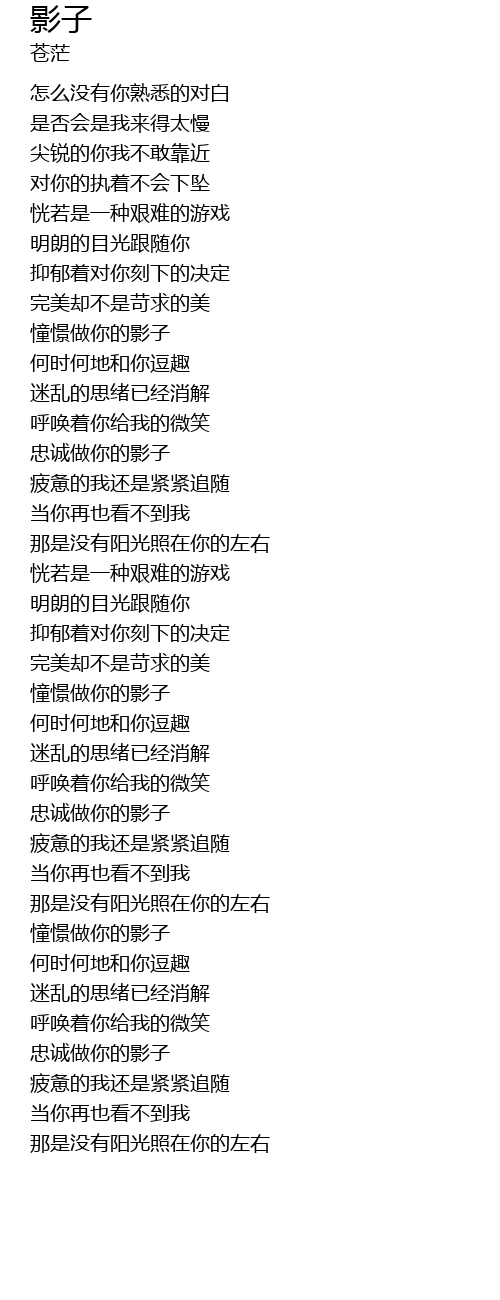 | [03:09.31] | zhōng chéng zuò nǐ de yǐng zi |