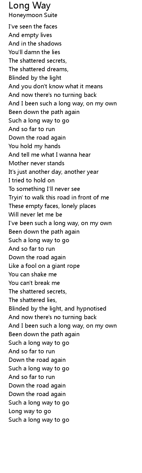 And I been such a long way, on my own |