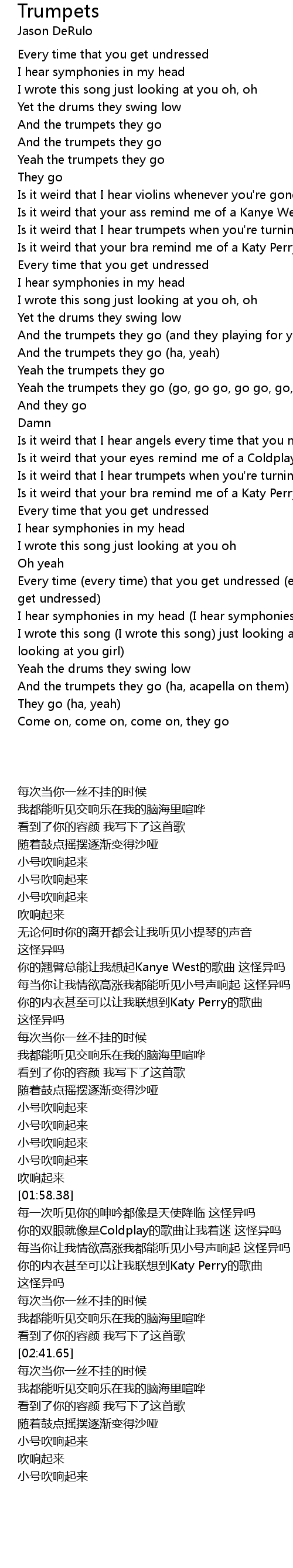[02:10.84] 每当你让我情欲高涨我都能听见小号声响起 这怪异吗