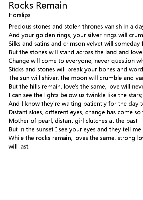 While the rocks remain, loves the same, strong love, strong love, strong love will last. |