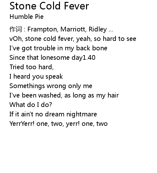 | vOh, stone cold fever, yeah, so hard to see | |