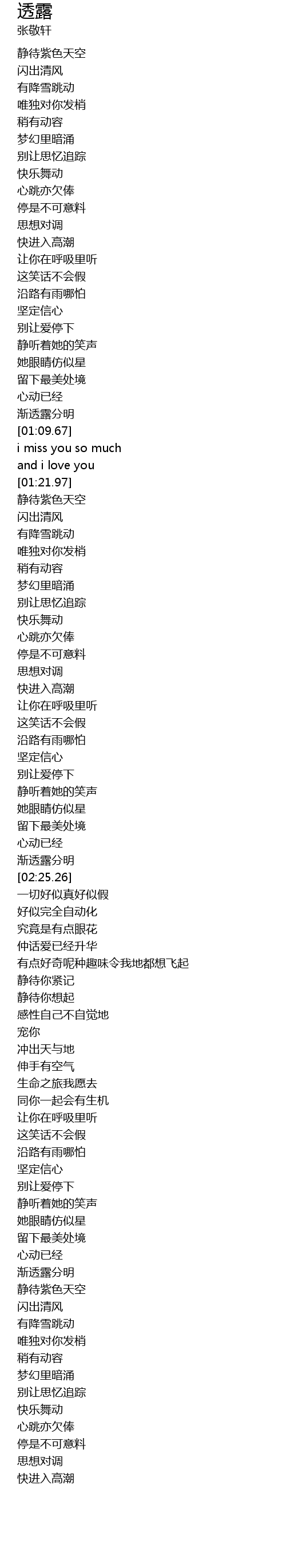 | [01:39.31] | jìng dài zǐ sè tiān kōng |