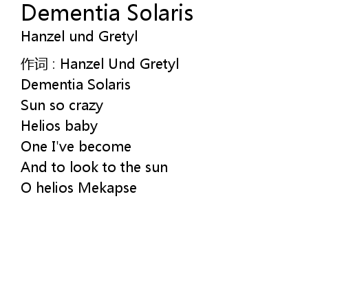 | 歌曲 | Dementia Solaris |