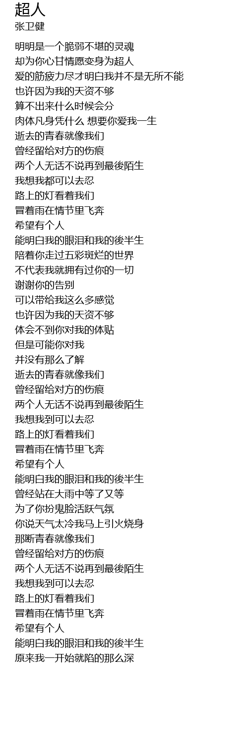 | [00:20.820] | 却为你心甘情愿变身为超人 |