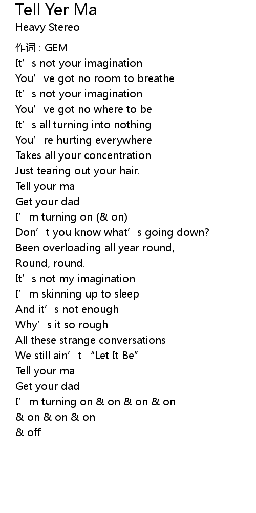 | 歌曲 | Tell Yer Ma |