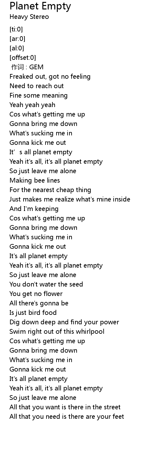 | [01:08.76] | It' s all planet empty |