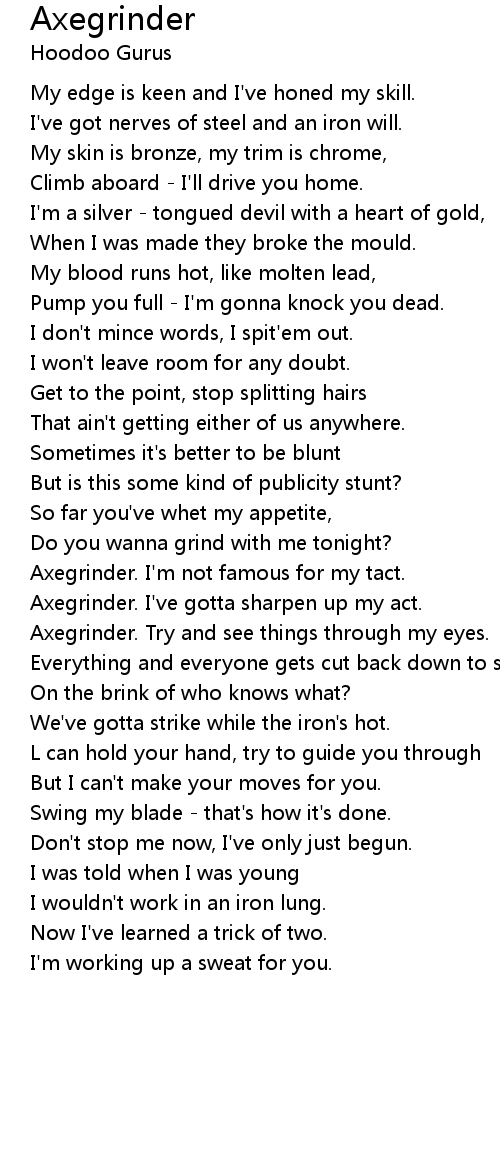 Axegrinder. I've gotta sharpen up my act. |