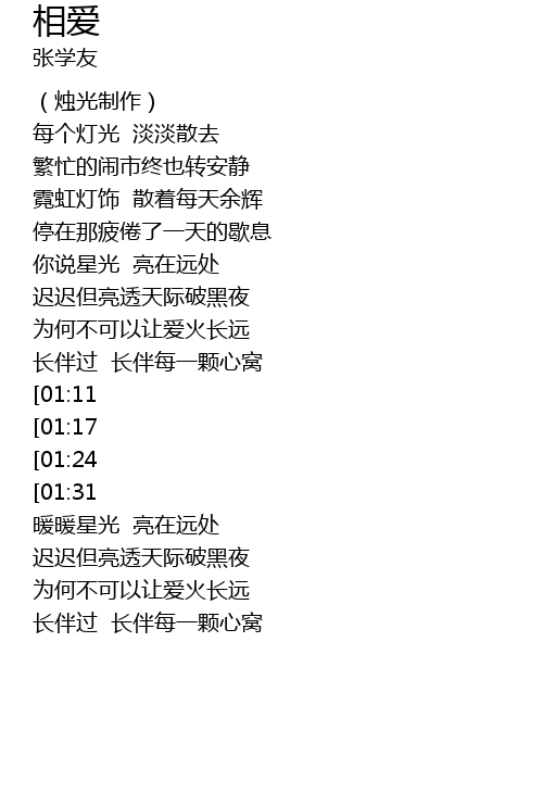 | [01:41] | 暖暖星光 亮在远处 |