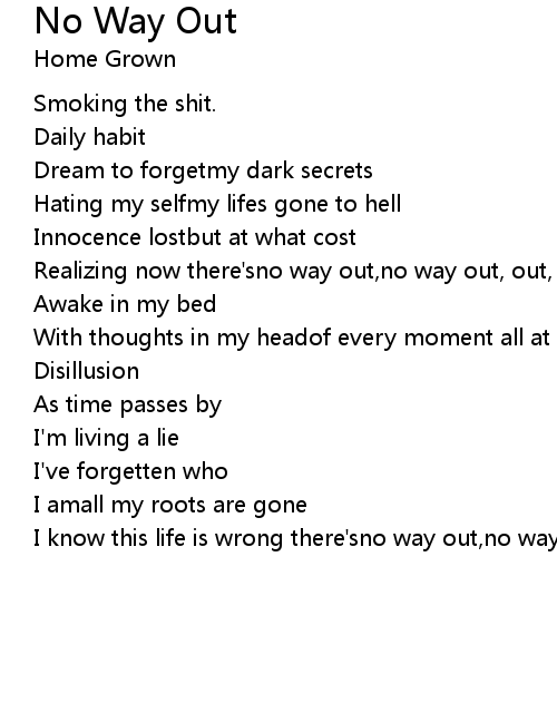 | I know this life is wrong there'sno way out,no way out, out, no way out. |