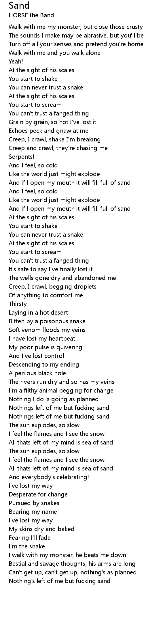 Nothing's left of me but fucking sand |