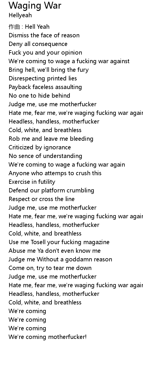 | We' re coming to wage a fucking war again | |