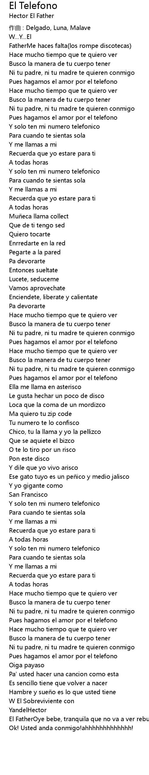 | 歌曲 | El Telefono |