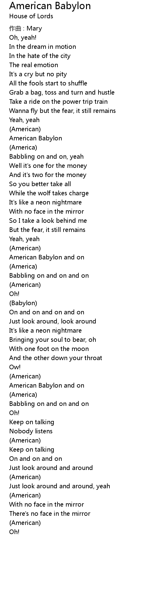 | 歌曲 | American Babylon |