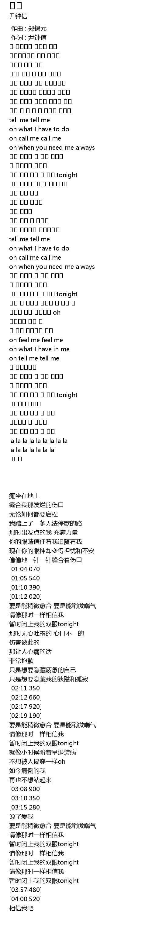 | [00:01.000] | 作词 : 尹钟信 |