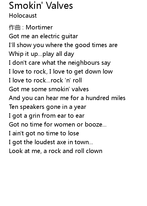 | 歌曲 | Smokin' Valves |
