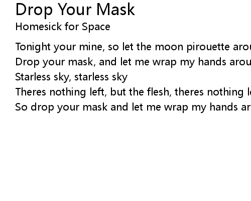 | So drop your mask and let me wrap my hands around your neck. starless sky. |